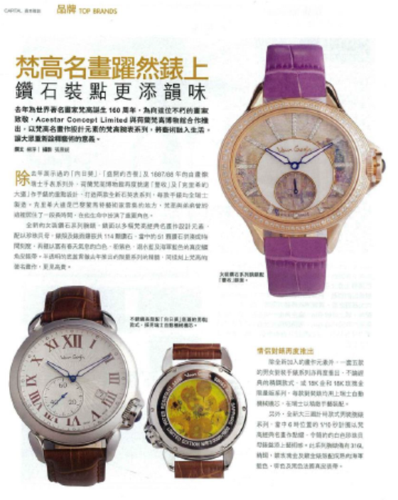 The world's first Swiss mechanical movement hollows with small seconds, with Van Gogh Limited Edition Certificate